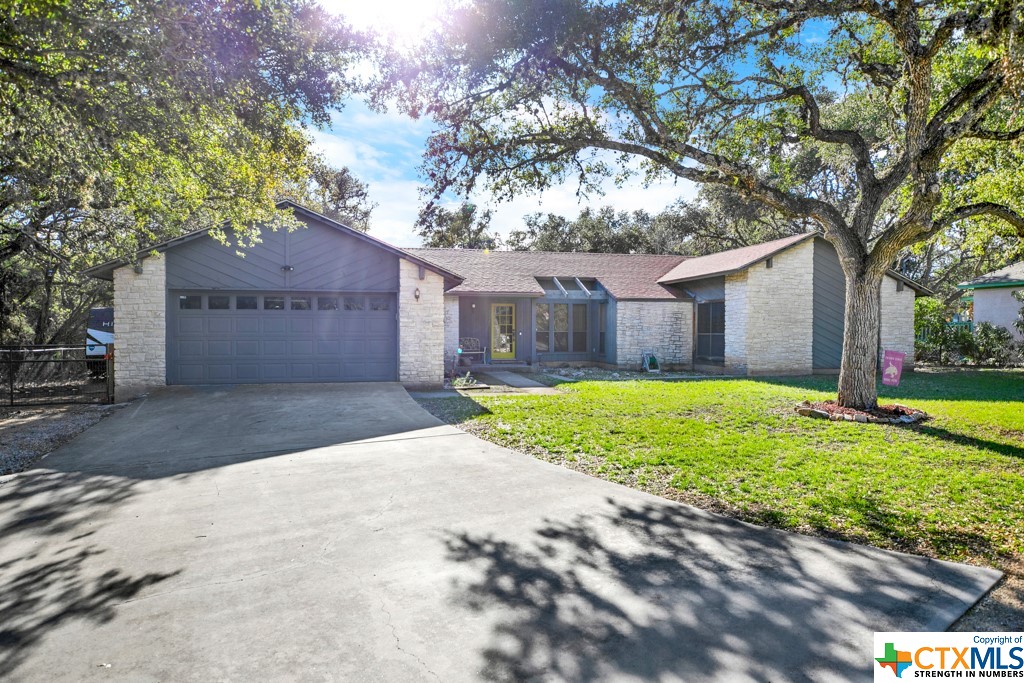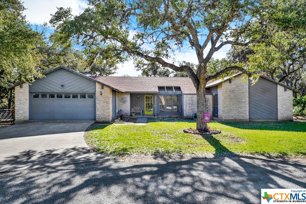 Convenience is key with the strategically placed utility room, ensuring peaceful relaxation away from the bedrooms, and leading seamlessly into the spacious two-car garage. Step outside to discover a tranquil oasis, complete with a sprawling covered patio, custom fencing, RV hookups, and an abundance of lush, mature trees. A completed chicken coop adds to the charm of the backyard retreat. Perfectly situated, this home provides easy access to boat ramps on the exhilarating Canyon Lake and is just minutes from town, offering both serenity and convenience. An added bonus, an aerobic septic system installed by the owner and meticulous maintenance throughout, this home epitomizes comfort, style, and functionality.