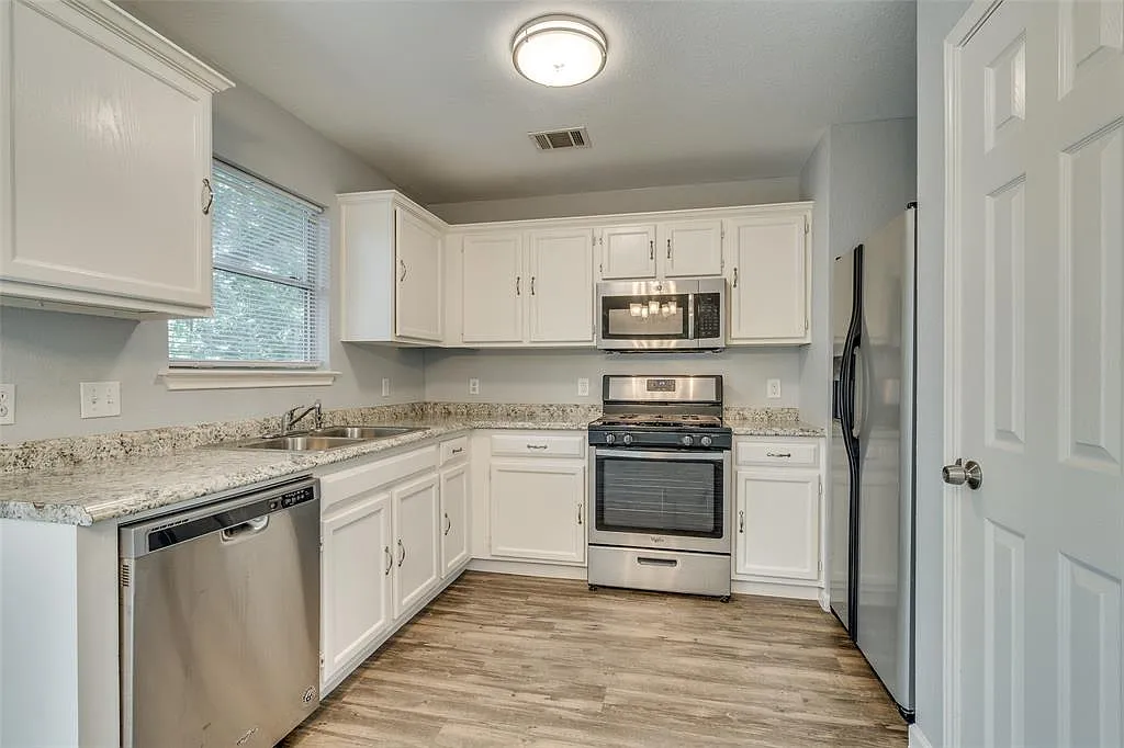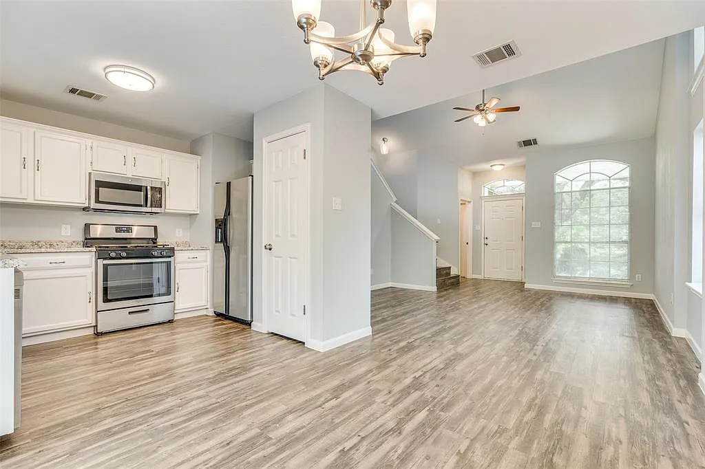 The main floor features a spacious primary bedroom with an attached master bath. Upstairs, you'll find two additional bedrooms and a versatile loft that can serve as a study or second entertainment room. Enjoy the serene backyard from the incredible porch, all within the privacy of a wooden fence. The home also features updated vinyl flooring throughout.